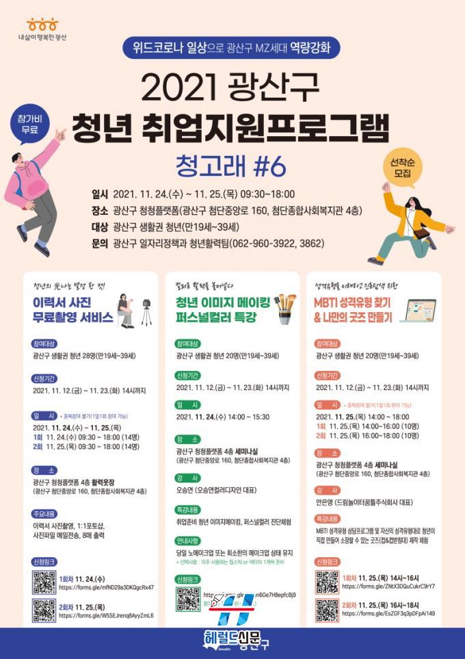 À̹ø û°í·¡ ÇÁ·Î±×·¥Àº Ãë¾÷À» ÁغñÇÏ´Â ±¤»ê±¸ û³â(¸¸19¼¼~39¼¼) ´ë»óÀ¸·Î À̷¼ »çÁø ÃÔ¿µ ¼ºñ½º, ÆÛ½º³ÎÄ÷¯, MBTI(¼º°ÝÀ¯ÇüÁöÇ¥ °Ë»ç) ÁÖÁ¦·Î ¿î¿µµÈ´Ù.