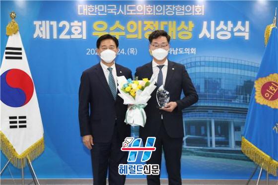 [Çì·²µå½Å¹® = ¹®»óÁØ ±âÀÚ] Àü³²µµÀÇȸ ³ª±¤±¹ ÀÇ¿ø(´õºÒ¾î¹ÎÁִ硤¹«¾È2)ÀÌ Áö³ 24ÀÏ¿¡ ¿¸° ´ëÇѹα¹½ÃµµÀÇȸÀÇÀåÇùÀÇȸ ÁÖ°ü ¡®Á¦12ȸ ¿ì¼öÀÇÁ¤ ´ë»ó¡¯¿¡¼ ¿ì¼öÀÇ¿øÀ¸·Î ¼±Á¤µÆ´Ù.