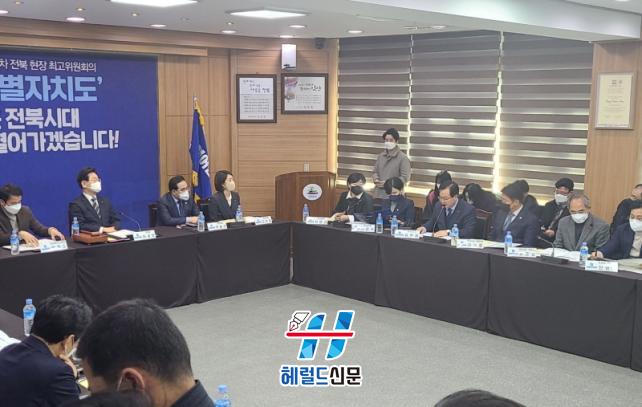 ‘국민 속으로 경청투어’로 진행된 이날 현장 최고위원회에는 이재명 당대표를 포함한 최고위원을 포함해 한병도 전북도당위원장, 안호영 의원 등 전북 국회의원들이 함께했다.
