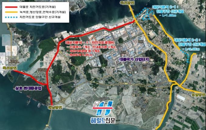 °ø¸ð ¼±Á¤À¸·Î ¿µ¾Ï±ºÀº ÃÑ 6¾ï ¿øÀ» µé¿© Çö´ë»ïÈ£Áß°ø¾÷ Á¤¹®~¿µ»ê°Çϱ¸µÏ~¿µ»êÈ£°ü±¤Áö~¼¼ÇÑ´ëÇб³¸¦ ÀÕ´Â ÃÑ 22.4km ±¸°£À» Á¤ºñÇÑ´Ù. ±¸Ã¼ÀûÀ¸·Î ÀÚÀü°Å±æ 9.9km´Â ¼Õº¸°í, ´ÜÀý±¸°£ 3.8km´Â Àմ´Ù. Á¤ºñ»ç¾÷À¸·Î Â÷¼± µµ»ö, ¾È³»Ç¥ÁöÆÇ ¼³Ä¡, ±æ Æ÷Àå µîÀÌ ³¡³ª¸é ÀÚÀü°Å ÀÌ¿ëÀÚµéÀÇ ºÒÆíÀÌ ÇØ¼ÒµÇ°í ¾ÈÀü»ç°í ¿¹¹æ¿¡µµ µµ¿òÀÌ µÉ Àü¸ÁÀÌ´Ù.