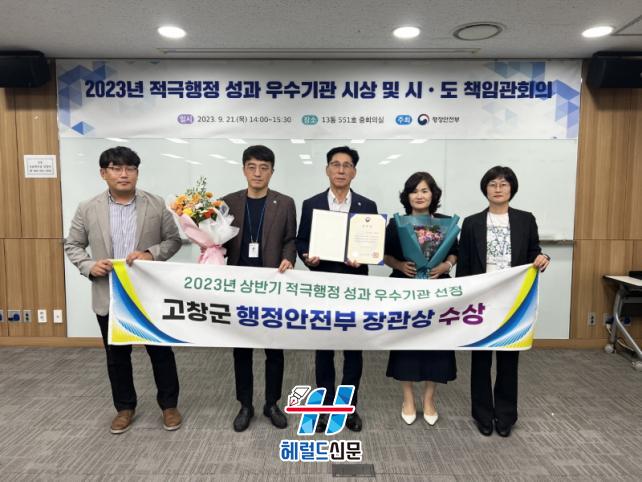 22ÀÏ °íⱺ¿¡ µû¸£¸é ÇàÁ¤¾ÈÀüºÎ ÁÖ°ü ¡®2023³â »ó¹Ý±â Àû±ØÇàÁ¤ ÃßÁø½ÇÀû Á¡°Ë °á°ú¡¯ °íⱺÀº Àü¶óºÏµµ¿¡¼ À¯ÀÏÇÏ°Ô ¿ì¼ö±â°üÀ¸·Î ¼±Á¤µÅ ÇàÁ¤¾ÈÀüºÎ Àå°ü ǥâÀ» ¼ö»óÇß´Ù.