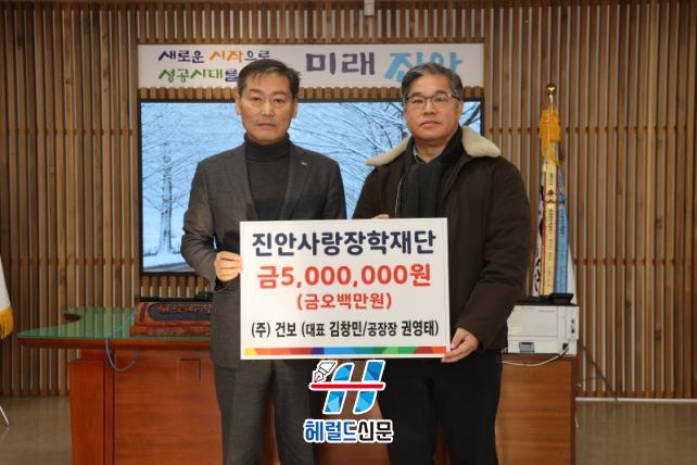 [Çì·²µå½Å¹® = ¹®»óÁØ ±âÀÚ] ¢ß°Çº¸(´ëÇ¥ ±èâ¹Î)°¡ Áø¾È»ç¶ûÀåÇÐÀç´Ü(ÀÌ»çÀå ÀüÃἺ)¿¡ ÀåÇÐ±Ý 500¸¸¿øÀ» Àü´ÞÇß´Ù.