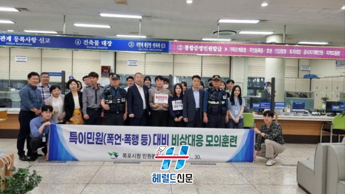 [Çì·²µå½Å¹® = ¹®»óÁØ ±âÀÚ] ¸ñÆ÷½Ã°¡ ¹Î¿øÀÎÀÇ Æø¾ð¡¤ÆøÇà µî ¡°Æ¯À̹οø¡±¿¡ ´ëÇÑ ¹Î¿ø´ã´ç °ø¹«¿øÀÇ ÇöÀå ´ëÀÀ ´É·ÂÀ» ³ôÀ̱â À§ÇØ Áö³ ´Þ 30ÀÏ ½Ãû ¹Î¿øºÀ»ç½Ç¿¡¼ ¡°Æ¯À̹οø ´ëºñ ºñ»ó´ëÀÀ ¸ðÀÇ ÈÆ·Ã¡±À» ½Ç½ÃÇß´Ù.