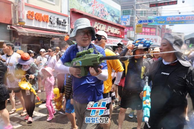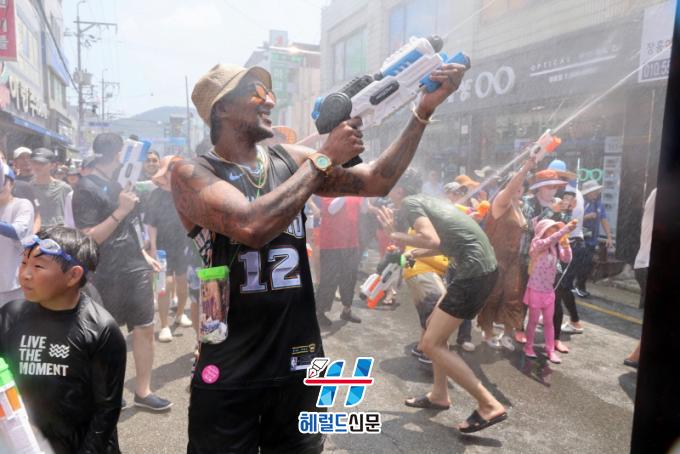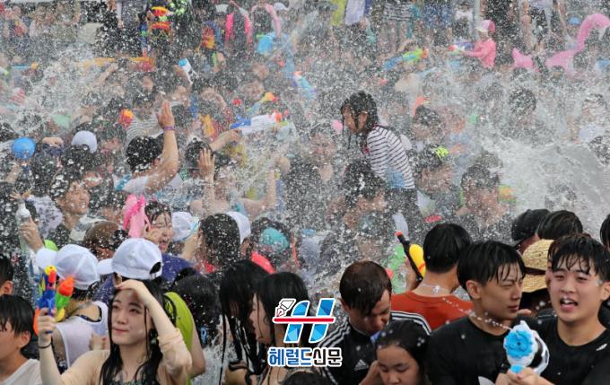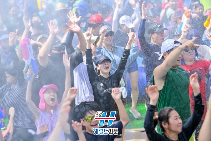 7¿ù 27ÀÏ Åä¿äÀÏ ¿ÀÈÄ 1½Ã, ÀåÈﱺ¹Îȸ°üÀ» Ãâ¹ßÇÑ °Å¸®ÆÛ·¹À̵å Çà·ÄÀº Á߾ӷθ¦ °ÅÃÄ Å½Áø°º¯ ÃàÁ¦Àå±îÁö ÇàÁøÇÑ´Ù. ¹°ÃàÁ¦ÀÇ Á᫐ ÇÁ·Î±×·¥ Áß ÇϳªÀÎ Áö»ó ÃÖ´ëÀÇ ¹°½Î¿òÀº ¸ÅÀÏ ¿ÀÈÄ 2½Ã ÀåÈï±³ ¾Æ·¡¼ ÁøÇàµÈ´Ù. ¹°½Î¿òÀå¿¡´Â °¡·Î¿Í ¼¼·Î 10m ±Ô¸ðÀÇ ¿¡¾î¹Ù¿î½º ¼ö¿µÀå 2°³¸¦ ¼³Ä¡ÇÏ°í ¹°¡¤ºÒ ´ëÀü À̺¥Æ® µîÀ» ÁغñÇϰí ÀÖ´Ù.