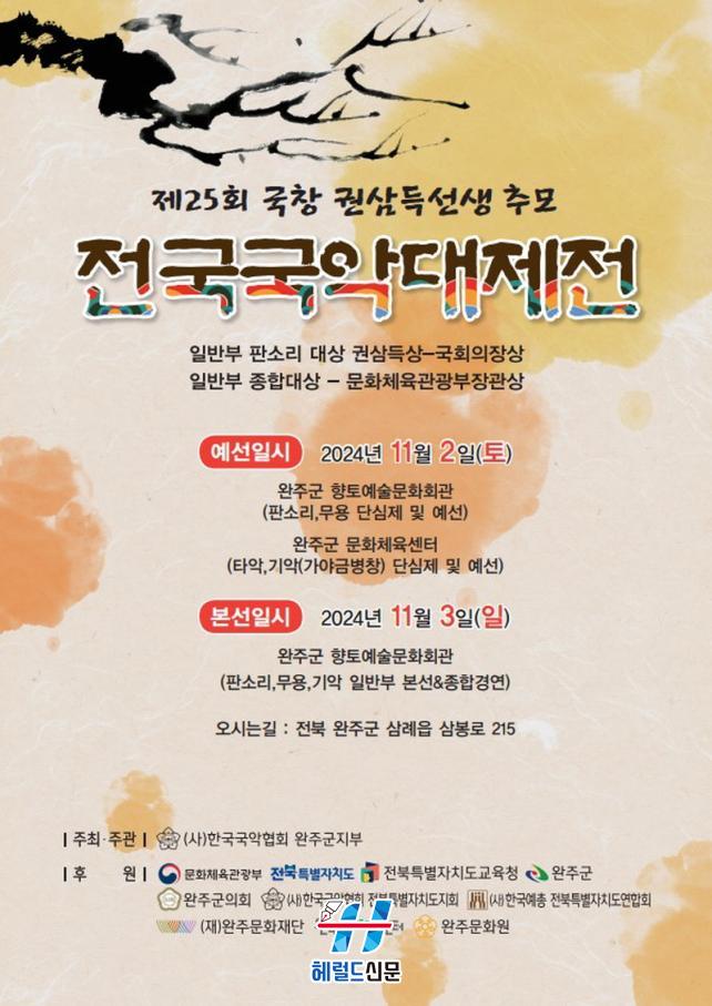 [Çì·²µå½Å¹® = ¹®»óÁØ ±âÀÚ] Á¶¼±½Ã´ë ÃÖÃÊ ¾ç¹Ý±¤´ëÀÌÀÚ 8´ë ¸íâÀ¸·Î ²ÅÈù ¿ÏÁÖ¿¹ÀÎ ±Ç»ïµæÀ» Ã߸ðÇÏ´Â Àü±¹±¹¾Ç´ëÁ¦ÀüÀÌ ¿À´Â 11¿ù 1ÀϺÎÅÍ 3ÀϱîÁö ¿ÏÁÖ±º ÀÏ¿ø¿¡¼ °³ÃֵȴÙ.