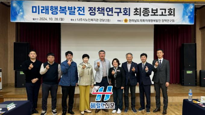 [Çì·²µå½Å¹® = ¹®»óÁØ ±âÀÚ] Àü¶ó³²µµÀÇȸ ¡®¹Ì·¡Çູ¹ßÀü Á¤Ã¥¿¬±¸È¸(´ëÇ¥ÀÇ¿ø ¼ÛÇü°ï)´Â Áö³ 10¿ù 28ÀÏ ³ªÁֽà ÀÏ¿ø¿¡¼ ¡¸³ëÀκ¹Áö ¹× û³â°ú Áö¿ª°øµ¿Ã¼ »ó»ý¡¹À» ÁÖÁ¦·Î Á¤Ã¥¿¬±¸¿ë¿ª ÃÖÁ¾º¸°íȸ¸¦ °³ÃÖÇß´Ù.