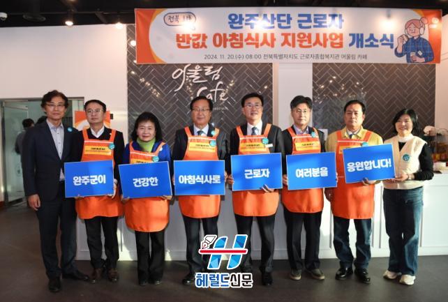 À¯ÈñÅ ¿ÏÁÖ±º¼ö´Â ¡°ÀüºÏ ÃÖÃÊ·Î ½ÃÀÛÇÏ´Â ±Ù·ÎÀÚ ¾ÆÄ§½Ä»ç Áö¿ø»ç¾÷À» ÅëÇØ ±â¾÷°ú ±Ù·ÎÀÚ°¡ »ó»ýÇÏ´Â °æÁ¦µµ½Ã ¿ÏÁÖ±ºÀÇ À§»óÀÌ ÇÑÃþ ´õ ³ô¾ÆÁ³´Ù¡±¸ç ¡°¾ÕÀ¸·Îµµ ±Ù·ÎÀÚÀÇ °Ç°°ú º¹Áö¸¦ ÁõÁø½Ã۱â À§ÇØ ´õ¿í ³ë·ÂÇϰڴ١±°í ¸»Çß´Ù.