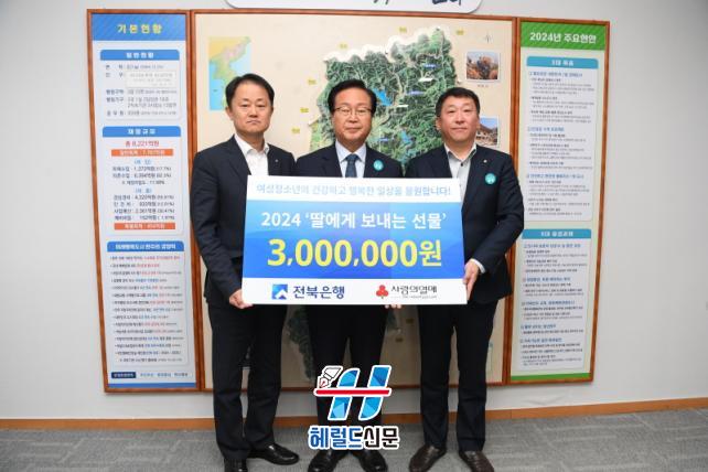[Çì·²µå½Å¹® = ¹®»óÁØ ±âÀÚ] JBÀüºÏÀºÇàÀÌ ¿ÏÁÖ±º¿¡ Àú¼Òµæ ¿©¼ºÃ»¼Ò³âÀ» À§ÇØ 300¸¸ ¿ø »ó´çÀÇ º¸°ÇÀ§»ý¿ëǰ 100¹Ú½º¸¦ ÈÄ¿øÇß´Ù.