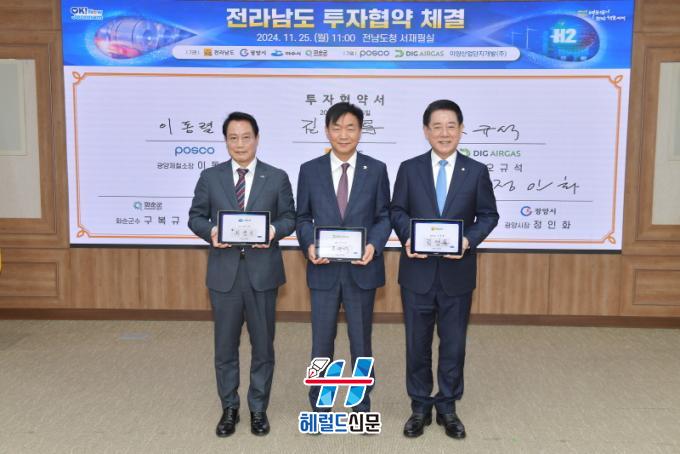 ¿©¼ö½Ã(½ÃÀå Á¤±â¸í)´Â Áö³ 25ÀÏ Àü³²µµÃ» ¼ÀçÇʽǿ¡¼ Àü³²µµ, µð¾ÆÀÌÁö¿¡¾î°¡½º¢ß¿Í ¿©¼ö±¹°¡»ê´Ü ³» ¼ö¼Ò, ¾×Èź»ê µî Á¦Á¶½Ã¼³ ½Å¼³ ÅõÀÚÇù¾àÀ» ü°áÇß´Ù. (¿ÞÂʺÎÅÍ ÃÖÁ¤±â ¿©¼ö½ÃºÎ½ÃÀå, ¿À±Ô¼® µð¾ÆÀÌÁö¿¡¾î°¡½º¢ß ´ëÇ¥, ±è¿µ·Ï Àü¶ó³²µµÁö»ç)