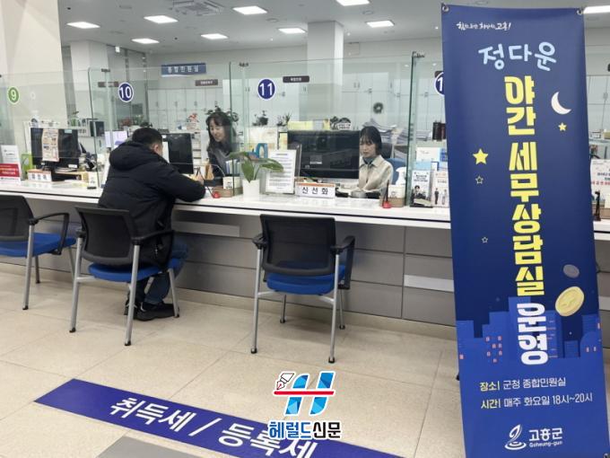 [Çì·²µå½Å¹® = ¹®»óÁØ ±âÀÚ] °íÈﱺ(±º¼ö °ø¿µ¹Î)Àº ÁÖ°£ ¾÷¹«½Ã°£ ³» ¹æ¹®ÀÌ ¾î·Á¿î ±º¹ÎÀÇ ¼¼¹«»ó´ã ±âȸ¸¦ È®´ëÇÏ¿© ³³¼¼ÀÚ ÆíÀǸ¦ Á¦°øÇÏ´Â ¡®±º¹Î¼ÓÀ¸·Î! Á¤´Ù¿î ¾ß°£ ¼¼¹«»ó´ã½Ç¡¯À» ¿î¿µÇÑ´Ù°í ¹àÇû´Ù.