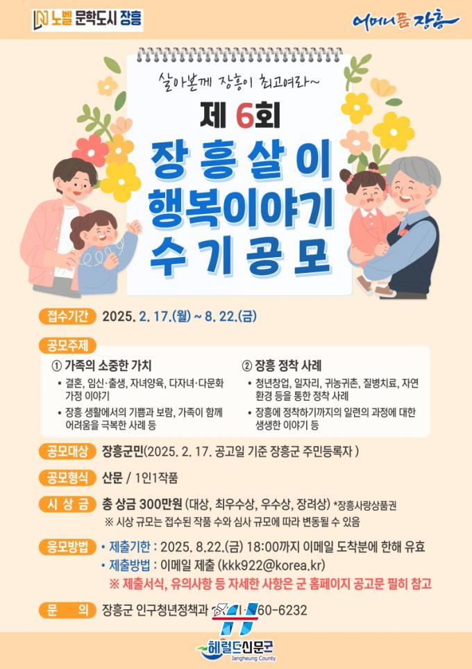 [Çì·²µå½Å¹® = Á¤¾ç¼® ±âÀÚ] ÀåÈﱺÀÌ ¡®Á¦6ȸ ÀåÈï»ìÀÌ ÇູÀ̾߱⠡¸»ì¾Æº»²² ÀåÈïÀÌ ÃÖ°í¿©¶ó¡¹¡¯ ¼ö±â °ø¸ð¸¦ 2¿ù 17ÀϺÎÅÍ 8¿ù 22ÀϱîÁö Á¢¼öÇÑ´Ù°í ¹àÇû´Ù.