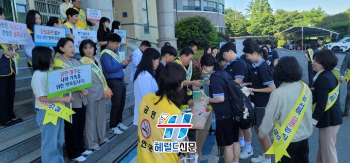 [Çì·²µå½Å¹® = Àü¿µ±Ô ±âÀÚ] ¹«¾È±º(±º¼ö ±è»ê)Àº Áö³ 5ÀÏ ¹éÁ¦°íµîÇб³ Á¤¹® ¾Õ¿¡¼ û¼Ò³â Èí¿¬ ¹× À½ÁÖ ¿¹¹æÀ» À§ÇÑ 2025 µî±·±æ ±Ý¿¬¡¤ÀýÁÖ ÇÕµ¿ Ä·ÆäÀÎÀ» ¹ú¿´´Ù.