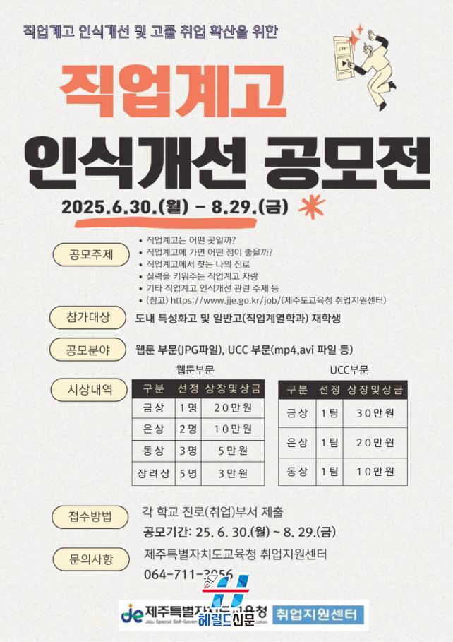 [Çì·²µå½Å¹® = Àü¿µ±Ô ±âÀÚ] Á¦ÁÖÆ¯º°ÀÚÄ¡µµ±³À°Ã»(±³À°°¨ ±è±¤¼ö)Àº µµ³» 9°³ Á÷¾÷°è °íµîÇб³ÀçÇлýÀ» ´ë»óÀ¸·Î¡®2025³âµµ Á÷¾÷°è°í Àνݳ¼± °ø¸ðÀü¡¯À» °³ÃÖÇÑ´Ù.