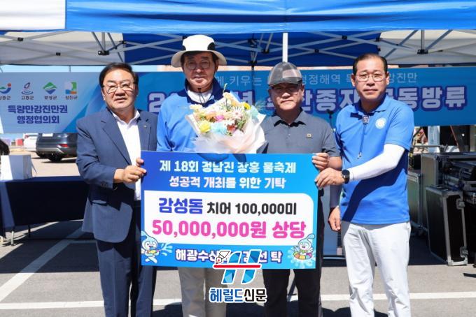 Áö¿ª ¾î¾÷Àεé°ú ÇØ¾ç °ü·Ã ´ÜüµéÀÌ °øµ¿À¸·Î Âü¿©ÇÑ ¹æ·ùÇà»ç¿¡¼´Â ÀåÈ°íÈº¸¼º¡¤°Áø 4°³ ±º µæ·®¸¸°Áø¸¸±ÇÇàÁ¤ÇùÀÇȸ 50,000¹Ì¿Í, ¼ö»êÁ¾ÀÚ»ý»ê¾÷üÀÎ ÇØ±¤¼ö»ê ±è¼±Å¹ ´ëÇ¥°¡ ±âºÎÇÑ 5õ¸¸ ¿ø »ó´çÀÇ °¨¼ºµ¼ Ä¡¾î 100,000¸¶¸®°¡ Ç®·È´Ù.