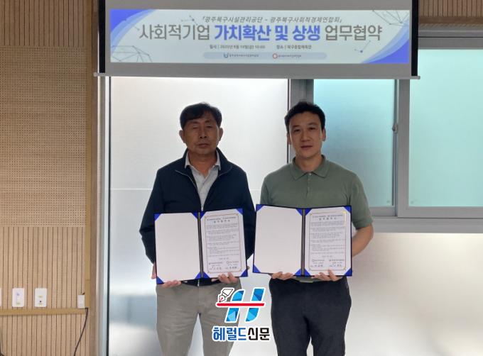 [Çì·²µå½Å¹® = Á¤µ·Ã¶ ±âÀÚ] ±¤ÁÖ±¤¿ª½ÃºÏ±¸½Ã¼³°ü¸®°ø´Ü(ÀÌÇÏ ¡°°ø´Ü¡±)Àº ±¤Áֺϱ¸»çȸÀû°æÁ¦¿¬ÇÕȸ(ÀÌÇÏ ¡°¿¬ÇÕȸ¡±)¿Í 19ÀÏ(±Ý) ºÏ±¸Á¾ÇÕüÀ°°ü¿¡¼ ¡®»çȸÀû±â¾÷ °¡Ä¡È®»ê ¹× »ó»ý ¾÷¹«Çù¾à¡¯À» ü°áÇß´Ù.