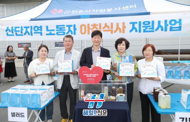 [Çì·²µå½Å¹® = ³ë½Â¾ð ±âÀÚ] ÀüÁÖ½Ã¿Í ÀüÁÖ½ÃÀÇȸ°¡ »õº® Ãâ±Ù »ê¾÷´ÜÁö ³ëµ¿Àڵ鿡°Ô µçµçÇÑ ¾ÆÄ§ ½Ä»ç¸¦ Áö¿øÇÏ¸ç °Ç°ÇÑ ÇÏ·çÀÇ Ãâ¹ßÀ» ÀÀ¿øÇß´Ù.