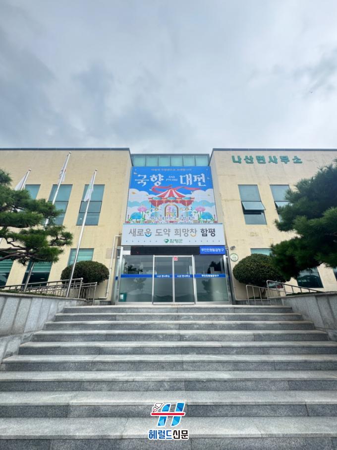 ÇÔÆò±º ³ª»ê¸éÀº Áö³ 24ÀÏ Ã»»ç ¿Üº®¿¡ ´ëÇü È«º¸ Çö¼ö¸·À» ¼³Ä¡ÇØ ¸é¹Î°ú ¹æ¹®°´µé¿¡°Ô ±¹Çâ´ëÀüÀ» ³Î¸® ¾Ë¸®¸ç ÃàÁ¦ ºÐÀ§±â¸¦ Á¶¼ºÇß´Ù. ¶Ç ÁÖ¿ä µµ·Îº¯°ú ¸¶À»È¸°ü, °ø°ø½Ã¼³ µî¿¡µµ Çö¼ö¸·°ú ÇöÆÇÀ» °Ô½ÃÇØ Áö¿ª Àü¿ª¿¡¼ ÃàÁ¦ ¿±â¸¦ È®»êÇϰí ÀÖ´Ù.