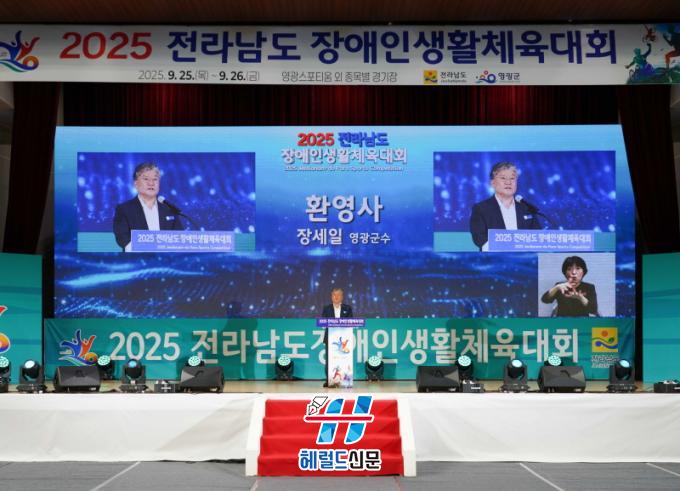 [Çì·²µå½Å¹® = ¼Û±Ù³² ±âÀÚ] ¿µ±¤±º(±º¼ö Àå¼¼ÀÏ)Àº 9¿ù 25ÀÏ ¿µ±¤ ±¹¹ÎüÀ°¼¾ÅÍ¿¡¼ ¡¸2025 Àü¶ó³²µµÀå¾ÖÀλýȰüÀ°´ëȸ¡¹°³È¸½ÄÀ» ¿°í, 1¹Ú 2Àϰ£ÀÇ ÈÇÕ°ú °¨µ¿ÀÇ ´ëÀåÁ¤À» ½ÃÀÛÇß´Ù.