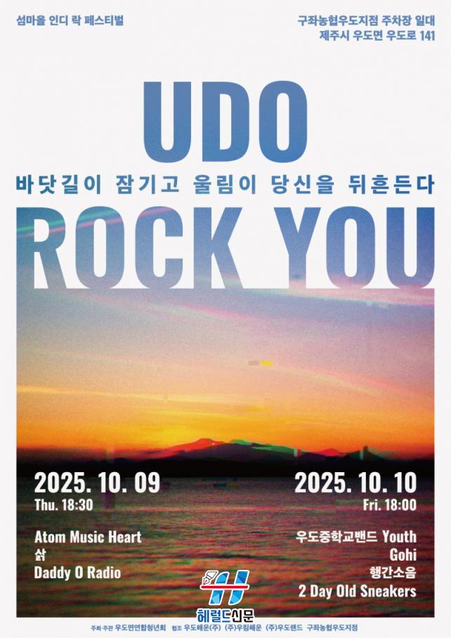 [Çì·²µå½Å¹® = ³ë½Â¾ð ±âÀÚ] Á¦Áֽà ¿ìµµ¸éÀº ¿À´Â 10¿ù 9ÀÏ(¸ñ)°ú 10ÀÏ(±Ý) ÀÌÆ²°£ ³óÇù¿ìµµÁöÁ¡ ÁÖÂ÷Àå ÀÏ´ë¿¡¼ Àεð ¶ô Æä½ºÆ¼¹ú ¡®U DO ROCK YOU 2025¡¯¸¦ °³ÃÖÇÑ´Ù.