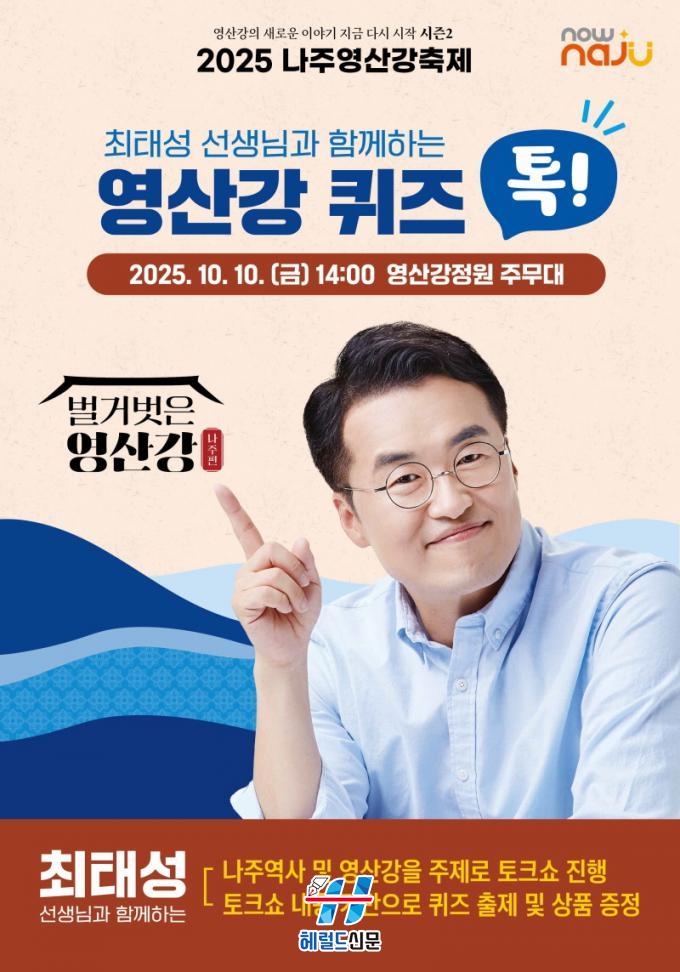 ³ªÁÖ½Ã(½ÃÀå À±º´ÅÂ)´Â ¿À´Â 10¿ù 10ÀÏ ¿ÀÈÄ 2½Ã¿¡ ³ªÁÖ¿µ»ê°ÃàÁ¦ÀÇ Á᫐ ¹«´ëÀÎ ¿µ»ê°Á¤¿ø ÁÖ¹«´ë¿¡¼ Çѱ¹»ç °»çÀÌÀÚ ¹æ¼ÛÀÎÀ¸·Î ³Î¸® ¾Ë·ÁÁø ÃÖżº ¼±»ý´Ô°ú ÇÔ²²Çϴ Ưº° ÇÁ·Î±×·¥ ¡®¿µ»ê° ÄûÁî Åå!¡¯À» °³ÃÖÇÑ´Ù°í 26ÀÏ ¹àÇû´Ù.