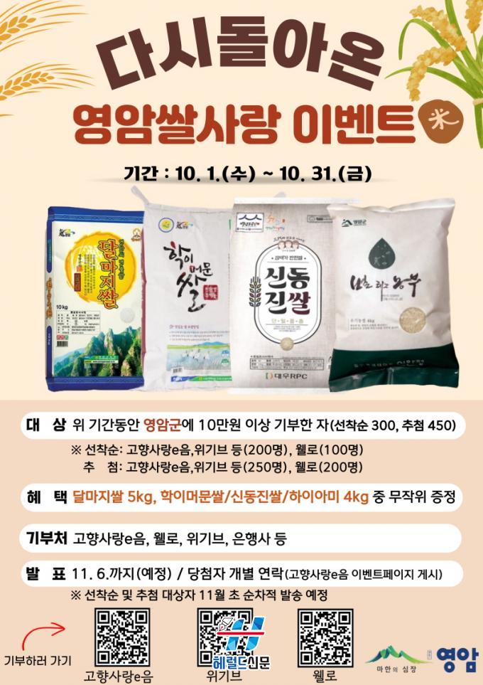 [Çì·²µå½Å¹® = ¼Û±Ù³² ±âÀÚ] ¿µ¾Ï±º(±º¼ö ¿ì½ÂÈñ)ÀÌ 10/1~31ÀÏ Áö¿ª ³ó»ê¹° ¼Òºñ ÃËÁø, °íÇâ»ç¶û±âºÎÁ¦ Ȱ¼ºÈ¸¦ À§ÇØ ÃÑ 750¸í¿¡°Ô ÇýÅÃÀ» ÁÖ´Â ¡®´Ù½Ã µ¹¾Æ¿Â ¿µ¾Ï½Ò»ç¶û À̺¥Æ®¡¯¸¦ ÁøÇàÇÑ´Ù.