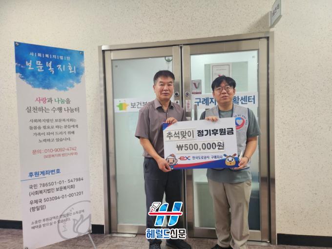 [Çì·²µå½Å¹® = ³ë½Â¾ð ±âÀÚ] Çѱ¹µµ·Î°ø»ç ±¸·ÊÁö»ç(Áö»çÀå ÇÔÁø±Ô)´Â 2025³â Ãß¼®À» ¸ÂÀÌÇÏ¿© Áö¿ª »çȸÀÇ ÀÌ¿ôµé¿¡°Ô µû¶æÇÑ ³ª´®ÀÇ ¼Õ±æÀ» ÀüÇϱâ À§ÇØ ±¸·ÊÁö¿ªÀÚȰ¼¾ÅÍ¿¡ ¿Â´©¸®»óǰ±Ç 50¸Å¸¦ ±âºÎÇß´Ù°í ¹àÇû´Ù.