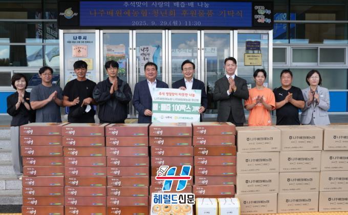 [Çì·²µå½Å¹® = ³ë½Â¾ð ±âÀÚ] ³ªÁÖ½Ã(½ÃÀå À±º´ÅÂ)´Â ³ªÁÖ¹è¿ø¿¹³óÇù(Á¶ÇÕÀå À̵¿Èñ)°ú ³ªÁÖ¹è¿ø¿¹³óÇù û³âȸ(ȸÀå ¹Ú¼ºÅÂ)¿¡¼ 29ÀÏ Ãß¼® ¸íÀýÀ» ¸Â¾Æ °ü³» Àú¼Òµæ ´ÙÀڳడÁ¤À» À§ÇØ ¹èÁó 50¹Ú½º¿Í ¹è 50¹Ú½º¸¦ ±âŹÇß´Ù°í ¹àÇû´Ù.