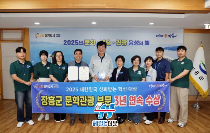 [Çì·²µå½Å¹® = Á¤¾ç¼® ±âÀÚ] ÀåÈﱺÀÌ 9¿ù 29ÀÏ °³ÃÖÇÑ ¡®2025 ´ëÇѹα¹ ½Å·Ú¹Þ´Â Çõ½Å´ë»ó¡¯½Ã»ó½Ä¿¡¼ ¹®Çаü±¤ ºÎ¹® °ø°øÇõ½Å ´ë»óÀ» ¼ö»óÇß´Ù°í ¹àÇû´Ù.