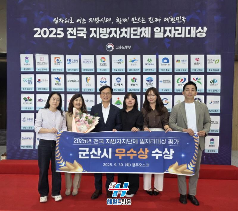 [Çì·²µå½Å¹® = ³ë½Â¾ð ±âÀÚ] ±º»ê½Ã°¡ 30ÀÏ Ã»ÁÖ¿À½ºÄÚ¿¡¼ ¿¸° °í¿ë³ëµ¿ºÎ ÁÖ°ü ¡®2025³â Àü±¹ Áö¹æÀÚÄ¡´Üü ÀÏÀÚ¸® ´ë»ó¡¯¿¡¼ 3³â ¿¬¼Ó ÀÏÀÚ¸® °ø½ÃÁ¦ ºÎ¹® ¿ì¼ö»ó(Àå°ü»ó)À» ¼ö»óÇß´Ù.