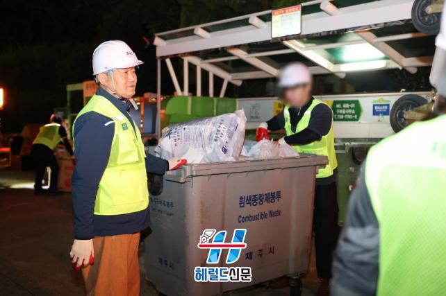 ±è¿Ï±Ù Á¦ÁÖ½ÃÀåÀº À̳¯ »õº® ±¸ÁÂÀ¾ û¼ÒÂ÷·® Â÷°íÁö¸¦ ã¾Æ û°áÇÑ Á¦Áֽø¦ ¸¸µé±â À§ÇØ Èû¾²°í Àִ û¼ÒÂ÷·® ¿îÀü¿ø°ú ȯ°æ¹ÌÈ¿øµéÀ» °Ý·ÁÇϰí, °¡¿¬¼ºÆó±â¹° ¼ö°Å ÀÛ¾÷¿¡ Á÷Á¢ Âü¿©Çß´Ù.