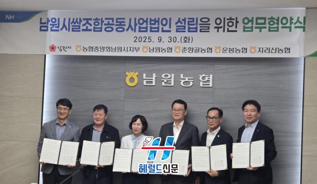 [Çì·²µå½Å¹® = ³ë½Â¾ð ±âÀÚ] ³²¿ø½Ã(½ÃÀå ÃÖ°æ½Ä)´Â À̹ø 9¿ù 30ÀÏ ³²¿ø³óÇù¿¡¼ ³óÇù½ÒÁ¶ÇÕ°øµ¿»ç¾÷¹ýÀÎ ¼³¸³À» À§ÇØ ³²¿ø½Ã(³²¿ø½Ã³ó¾÷±â¼ú¼¾ÅͼÒÀå), ³óÇùÁß¾Óȸ³²¿ø½ÃÁöºÎ(ÁöºÎÀå ¿À¿µ¼®), ³²¿ø³óÇù(Á¶ÇÕÀå ¹Ú±â¿), ÃáÇâ°ñ³óÇù(Á¶ÇÕÀå ±è¿µ±Ô), ¿îºÀ³óÇù(Á¶ÇÕÀå ¿À¿ë´ã), Áö¸®»ê³óÇù(Á¶ÇÕÀå Á¤´ëȯ)°ú ¾÷¹«Çù¾à½ÄÀ» °³ÃÖÇß´Ù.