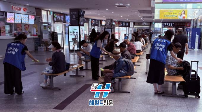 [Çì·²µå½Å¹® = ³ë½Â¾ð ±âÀÚ] ¸ñÆ÷½Ã´Â Ãß¼® ¿¬ÈÞ¸¦ ¸Â¾Æ 10¿ù 1Àϰú 2ÀÏ ÀÌÆ²°£ ¸ñÆ÷Á¾ÇÕ¹ö½ºÅ͹̳ΰú ¸ñÆ÷¿ª ±¤Àå¿¡¼ °íÇâ»ç¶û±âºÎÁ¦ È«º¸ Ä·ÆäÀÎÀ» ½Ç½ÃÇß´Ù°í ¹àÇû´Ù.