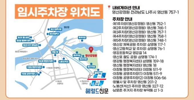 [Çì·²µå½Å¹® = ³ë½Â¾ð ±âÀÚ] ³ªÁÖ½Ã(½ÃÀå À±º´ÅÂ)°¡ ¿À´Â 10¿ù 8ÀϺÎÅÍ 12ÀϱîÁö ¿µ»ê°Á¤¿ø(³ªÁֽà ¿µ»êµ¿ 757-1) ÀÏ¿ø¿¡¼ ¿¸®´Â ¡®2025 ³ªÁÖ¿µ»ê°ÃàÁ¦¡¯¸¦ ã´Â ¹æ¹®°´µéÀÇ ÆíÀÇ¿Í ¾ÈÀüÀ» À§ÇØ ´ë´ëÀûÀÎ ±³Å롤ÁÖÂ÷ ´ëÃ¥À» ¸¶·ÃÇß´Ù. (Ç¥1. 2025 ³ªÁÖ¿µ»ê°ÃàÁ¦ ÁÖÂ÷Àå ÁøÃâÀÔ·Î)