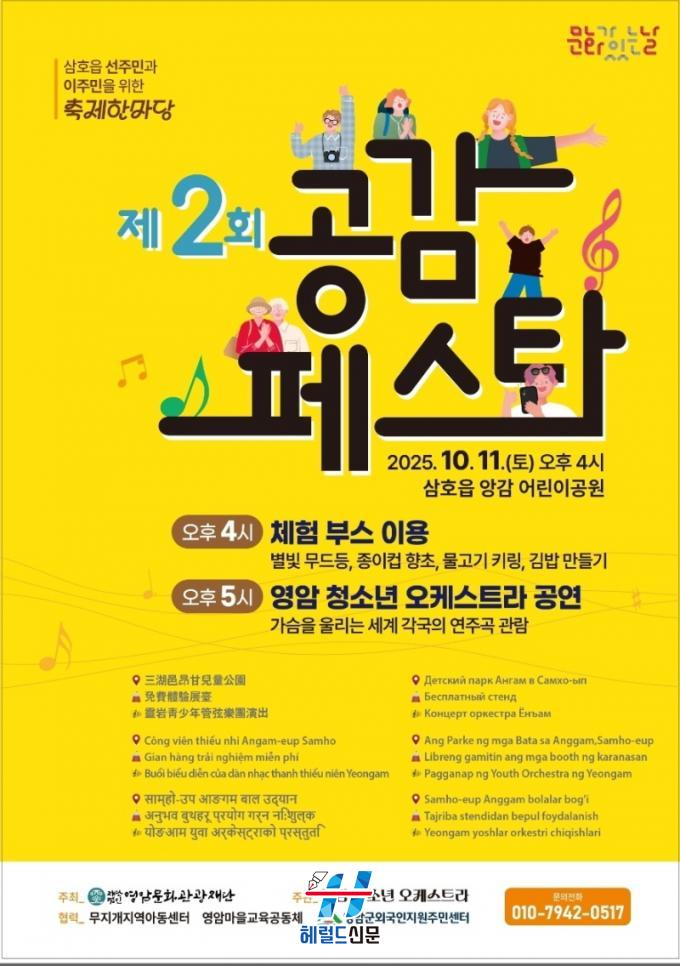 [Çì·²µå½Å¹® = ¼Û±Ù³² ±âÀÚ] (Àç)¿µ¾Ï¹®È°ü±¤Àç´Ü°ú ¿µ¾Ïû¼Ò³â¿ÀÄɽºÆ®¶ó´Â ¹®È°¡ Àִ³¯ Çà»çÁö¿ø »ç¾÷À¸·Î 2025³â 10¿ù 11ÀÏ(Åä) ¿ÀÈÄ 4½Ã »ïÈ£À¾ ¾Ó°¨ ¾î¸°ÀÌ °ø¿ø¿¡¼ ¡®Á¦2ȸ °ø°¨Æä½ºÅ¸¡¯Çà»ç¸¦ °³ÃÖÇÑ´Ù.