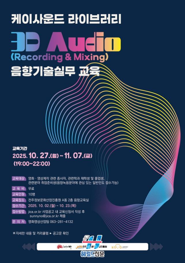 ¿À´Â 27ÀÏ~11¿ù 7ÀϱîÁö ÄÉÀÌ»ç¿îµå ¶óÀ̺귯¸® 3D AudioÀ½Çâ±â¼ú ½Ç¹«±³À° ÇÁ·Î±×·¥ ¿î¿µ