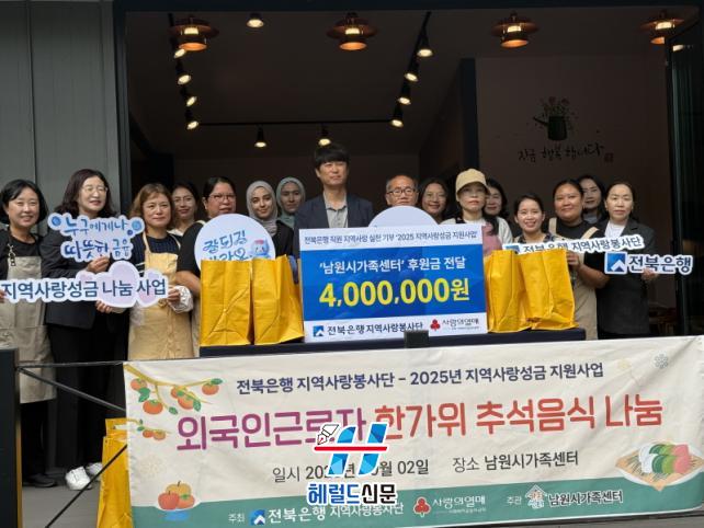 À̹ø ¿Ü±¹ÀαٷÎÀÚ Ãß¼®À½½Ä ³ª´®Àº JB±ÝÀ¶±×·ì ÀüºÏÀºÇà Áö¿ª»ç¶û¼º±Ý 400¸¸¿øÀ» Áö¿ø¹Þ¾Æ ÁøÇàµÇ¾ú´Ù.