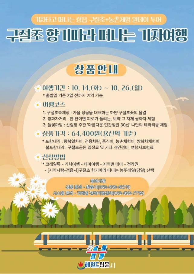 [Çì·²µå½Å¹® = ³ë½Â¾ð ±âÀÚ] Á¤À¾½Ã³ó¾÷±â¼ú¼¾ÅͰ¡ °¡À» ¿©ÇàöÀ» ¸Â¾Æ ±¸ÀýÃÊ ²ÉÃàÁ¦¿Í ³óÃÌüÇèÀ» ¿«Àº ±âÂ÷¿©Çà »óǰ ¡®³ó¶Ñ·¹ÀÏ Åõ¾î¡¯ Âü°¡ÀÚ¸¦ ¿À´Â 19ÀϱîÁö ¸ðÁýÇÑ´Ù.