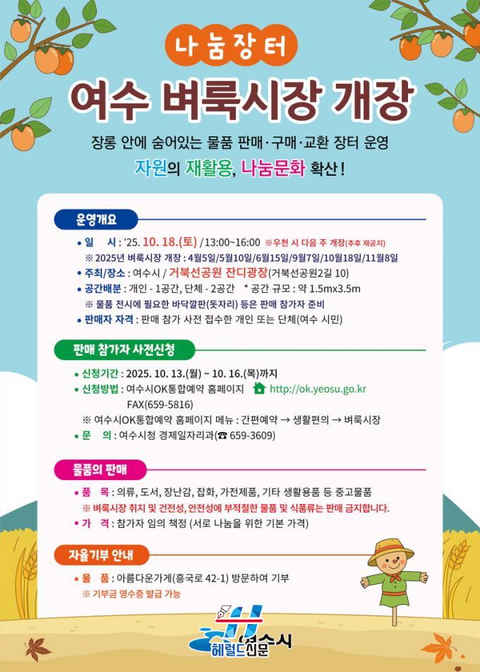 [Çì·²µå½Å¹® = ³ë½Â¾ð ±âÀÚ] ¿©¼ö½Ã(½ÃÀå Á¤±â¸í)´Â ¿À´Â 10¿ù 18ÀÏ(Åä) ¿ÀÈÄ 1½ÃºÎÅÍ 4½Ã±îÁö °ÅºÏ¼±°ø¿ø Àܵð±¤Àå¿¡¼ 2025³â ¡®Á¦5ȸ ¿©¼öº·è½ÃÀ塯À» °³ÃÖÇÑ´Ù.