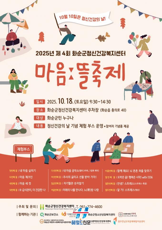 ¸¶À½¶ã ÃàÁ¦´Â ȼø±ºÁ¤½Å°Ç°º¹Áö¼¾ÅÍ(¼¾ÅÍÀå Á¤°¿µ) ÁÖ°üÀ¸·Î 2022³â Á¦1ȸ ÃàÁ¦¸¦ ½ÃÀÛÀ¸·Î ¸Å³â 10¿ù Á¤½Å°Ç°ÀÇ ³¯ ÁÖ°£¿¡ ¿¸®°í ÀÖÀ¸¸ç, ¿ÃÇØ·Î 4ȸ°¸¦ ¸ÂÀÌÇß´Ù.