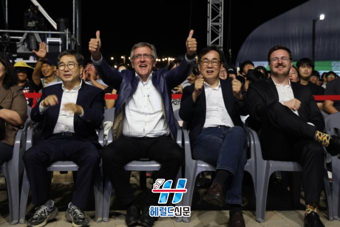 ÇÑÆí, Å丶½º ±×¸®½º ±³¼ö´Â °£´ãȸ ÀÌÈÄ ¡®2025 ³ªÁÖ¿µ»ê°ÃàÁ¦¡¯°¡ ¿¸®°í ÀÖ´Â ¿µ»ê°Á¤¿øÀ» ¹æ¹®ÇØ °»ó±¸ ºÎ½ÃÀå°ú ÇÔ²² Á¤¿øÀ» µÑ·¯º¸°í Àú³á °ø¿¬À¸·Î ¿¸° ÄÉÀÌÆË ÄܼƮ¸¦ °ü¶÷Çϸç ÃàÁ¦ ºÐÀ§±â¸¦ Áñ°å´Ù.