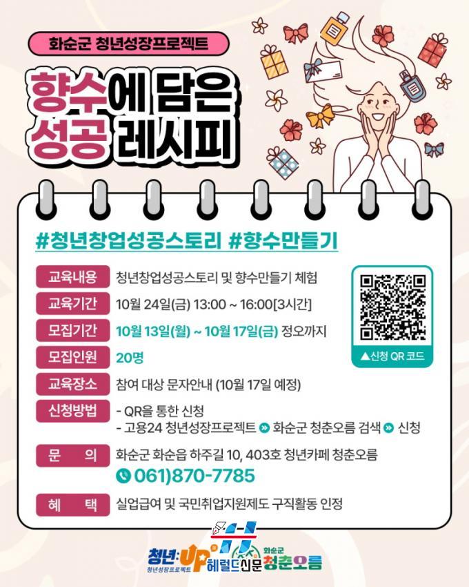 ÇÁ·Î±×·¥Àº °¢°¢ 2025³â 10¿ù 23ÀÏ(¸ñ), 24ÀÏ(±Ý) ¿ÀÈÄ 13½ÃºÎÅÍ 3½Ã°£ µ¿¾È ÁøÇàµÇ¸ç, Àå¼Ò´Â Âü¿©ÀÚ¿¡°Ô °³º° ¹®ÀÚ·Î ¾È³»µÉ ¿¹Á¤ÀÌ´Ù. û³â ´©±¸³ª ½ÅûÀÌ °¡´ÉÇϸç, ¼±Âø¼ø 20¸í ¸¶°¨ÀÌ´Ù. ½Åû ¹æ¹ýÀº Æ÷½ºÅÍ QRÄÚµå ¶Ç´Â °í¿ë24 ¡æ û³â¼ºÀåÇÁ·ÎÁ§Æ® ¡æ ȼø±º ûÃá¿À¸§À» °Ë»öÇÏ¿© ½ÅûÇÒ ¼ö ÀÖ´Ù.
