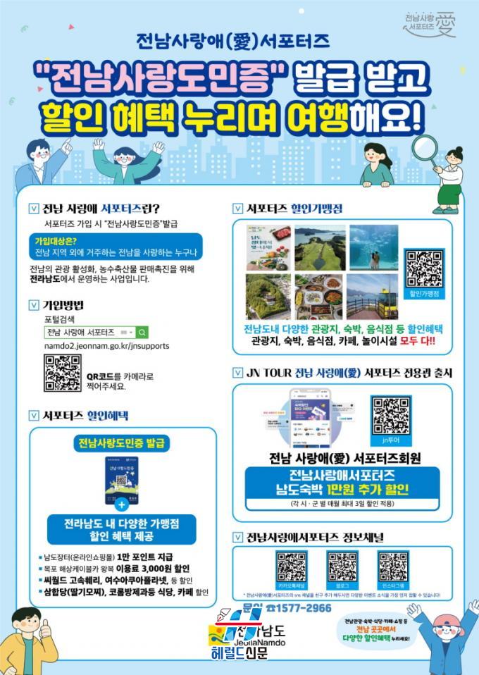 Àü³² »ç¶û¾Ö ¼Æ÷ÅÍÁî´Â Áö¿ª ¼Ò¸ê À§±â¸¦ ±Øº¹ÇÏ°í ³óÆ¯»ê¹° ÆÇ¸Å ÃËÁø, °ü±¤ Ȱ¼ºÈ¸¦ À§ÇØ Áö³ 2022³â 9¿ùºÎÅÍ ¿î¿µµÇ°í ÀÖ´Ù. °¡ÀÔÀÚ¿¡°Ô´Â Àü³² µµ³» °ü±¤Áö, ¼÷¹Ú, À½½ÄÁ¡, ÀüÅë½ÃÀå µî ÇÒÀΰ¡¸ÍÁ¡¿¡¼ ÇÒÀÎ ÇýÅÃÀ» ¹ÞÀ» ¼ö ÀÖ´Â ¡®Àü³²»ç¶ûµµ¹ÎÁõ¡¯ÀÌ ¹ß±ÞµÈ´Ù.