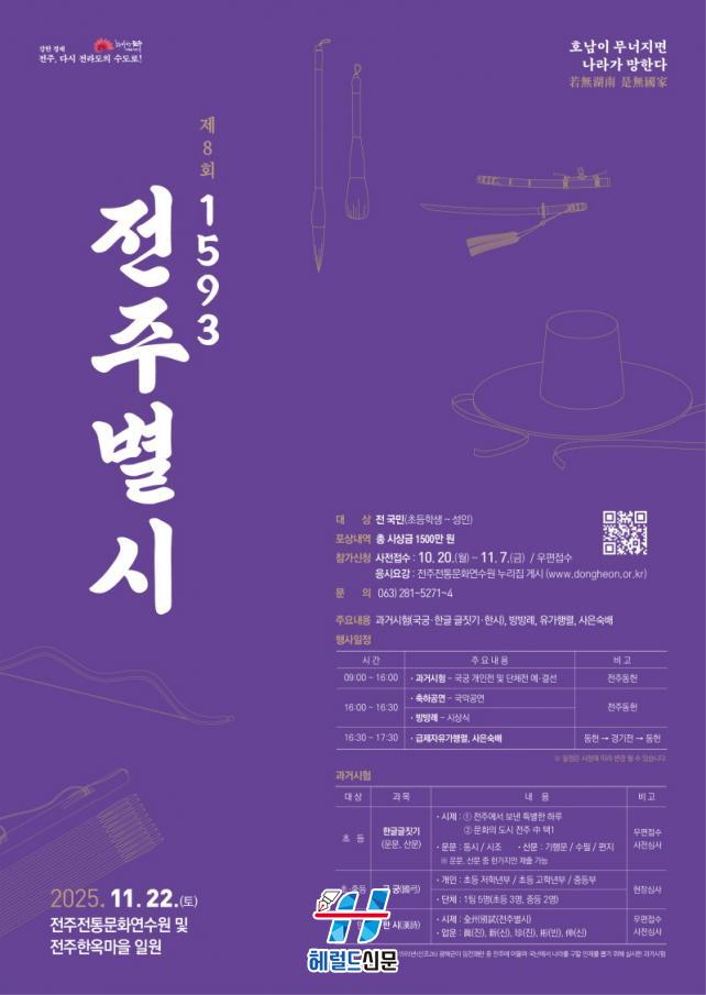 ÀüÁֽô ¿À´Â 22ÀÏ ÀüÁÖÀüÅ빮ȿ¬¼ö¿ø°ú °æ±âÀü µî ÀüÁÖÇÑ¿Á¸¶À» ÀÏ¿ø¿¡¼ ¡®Á¦8ȸ 1593 ÀüÁÖº°½Ã ÀçÇöÇà»ç¡¯¸¦ °³ÃÖÇÑ´Ù.