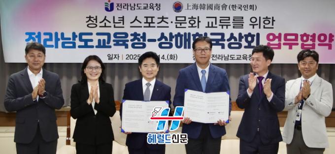 [Çì·²µå½Å¹® = ³ë½Â¾ð ±âÀÚ] Àü¶ó³²µµ±³À°Ã»(±³À°°¨ ±è´ëÁß)Àº 14ÀÏ »óÇØÇѱ¹»óȸ(ȸÀå ŹÁ¾ÇÑ)¿Í ¡®Ã»¼Ò³â ½ºÆ÷Ã÷¡¤¹®È ±³·ù¸¦ À§ÇÑ ¾÷¹«Çù¾à¡¯À» ü°áÇß´Ù.