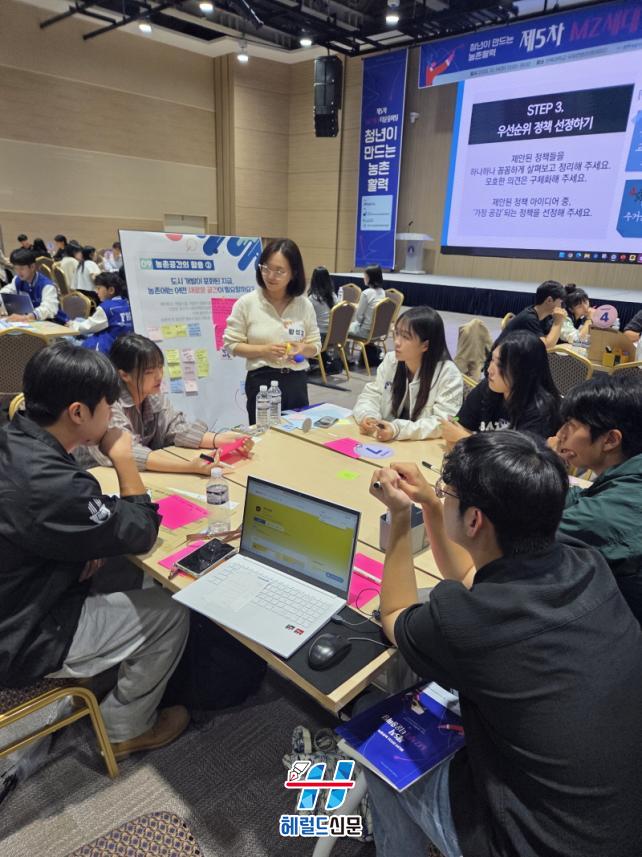 [Çì·²µå½Å¹® = ³ë½Â¾ð ±âÀÚ] ÀüºÏƯº°ÀÚÄ¡µµ´Â 14ÀÏ ÀüºÏ´ëÇб³ ±¹Á¦ÄÁº¥¼Ç¼¾ÅÍ¿¡¼ ¡®Ã»³âÀÌ ¸¸µå´Â ³óÃÌȰ·Â¡¯À» ÁÖÁ¦·Î ¡¸MZ¼¼´ë Ÿ¿îȦ ¹ÌÆÃ¡¹À» °³ÃÖÇß´Ù. À̹ø Çà»ç´Â ÀüºÏ´ë ³ó»ý¸í´ëÇÐ ÇлýµéÀÌ Á÷Á¢ Âü¿©ÇØ ÀüºÏ ³ó¾÷‧³óÃÌ Á¤Ã¥À» Á¦¾ÈÇÏ°í ³íÀÇÇÏ´Â ¼ÒÅëÀÇ ÀåÀ¸·Î ¸¶·ÃµÆ´Ù.