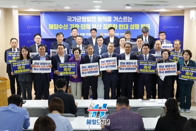 ÃÖ ÀÇ¿øÀº ³¡À¸·Î ¡°Á¤ºÎ¿Í ±¹È¸´Â ÇØ¾ç¼ö»ê ±â°ü°ú ±â¾÷ÀÇ ºÎ»ê ÀÌÀüÀ» Á¶ÀåÇÏ´Â ¹ý¾ÈÀ» Áï°¢ Àç°ËÅäÇϰí, Àü³² ÇØ¾ç¼ö»ê »ê¾÷ÀÇ Áö¼Ó°¡´É¼ºÀ» º¸ÀåÇÒ ´ëÃ¥À» ¸¶·ÃÇØ¾ß ÇÑ´Ù¡±°í °ÇÏ°Ô Ã˱¸Çß´Ù.