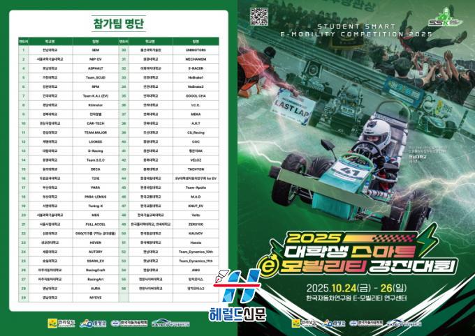 [Çì·²µå½Å¹® = ¼Û±Ù³² ±âÀÚ] Àü¶ó³²µµ¿Í ¿µ±¤±º, (»ç)Çѱ¹ÀÚµ¿Â÷°øÇÐȸ´Â ¿À´Â 10¿ù 24ÀÏ(±Ý)ºÎÅÍ 26ÀÏ(ÀÏ)±îÁö 3Àϰ£ ¿µ±¤±º ´ë¸¶¸é Çѱ¹ÀÚµ¿Â÷¿¬±¸¿ø e-¸ðºô¸®Æ¼ ¿¬±¸¼¾ÅÍ ÀÏ¿ø¿¡¼ ¡®2025 ´ëÇлý ½º¸¶Æ® e-¸ðºô¸®Æ¼ °æÁø´ëȸ¡¯¸¦ °³ÃÖÇÑ´Ù°í ¹àÇû´Ù.
