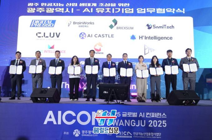 [Çì·²µå½Å¹® = ³ë½Â¾ð ±âÀÚ] ±¤ÁÖ±¤¿ª½Ã(½ÃÀå °±âÁ¤)´Â 15ÀÏ ±è´ëÁßÄÁº¥¼Ç¼¾ÅÍ¿¡¼ ¿¸° ¡®¾ÆÀÌÄÜ(AICON) ±¤ÁÖ 2025¡¯ °³¸·½Ä¿¡¼ ±¹³» ÀΰøÁö´É(AI) À¯¸Á±â¾÷ 10°³ »ç¿Í ¡®±¤ÁÖÇü ÀΰøÁö´É(AI) ºñÁî´Ï½º ¾÷¹«Çù¾à(MOU)¡¯À» ü°áÇß´Ù.