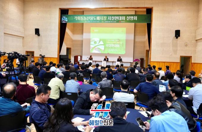 À̹ø ¼³¸íȸ´Â °¢Èµ¿³ó»ê¹°µµ¸Å½ÃÀå ½Ã¼³Çö´ëÈ ¿ë¿ª°á°ú¿Í ÇâÈÄ ÃßÁø°èȹ µîÀ» ½Ã¹Î°ú °øÀ¯Çϰí, µµ¸Å½ÃÀå ÀÌÀü Çʿ伺¿¡ ´ëÇÑ °ø°¨´ë¸¦ Çü¼ºÇϱâ À§ÇØ ¸¶·ÃµÆ´Ù.