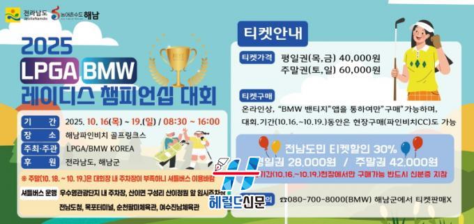 16ÀϺÎÅÍ 19ÀϱîÁö ÇØ³² ÆÄÀκñÄ¡ °ñÇÁ¸µÅ©½º¿¡¼ ¿¸®´Â ¡®LPGA BMW ·¹À̵𽺠èÇǾð½Ê¡¯Àº È£³²±Ç ÃÖÃÊ·Î °³ÃֵǴ LPGA Á¤±ÔÅõ¾î ´ëȸ´Ù. À̹ø ´ëȸ´Â Àü ¼¼°è 170¿© °³±¹¿¡ »ýÁß°èµÇ¸ç, °¡À»ºûÀ¸·Î ¹°µç Àü³²ÀÇ ¾Æ¸§´Ù¿î dz±¤À» ¹«´ë »ï¾Æ ¼¼°è ¿©ÀÚ°ñÇÁÀÇ È·ÁÇÑ ÃàÁ¦°¡ ¸·À» ¿Ã¸°´Ù.